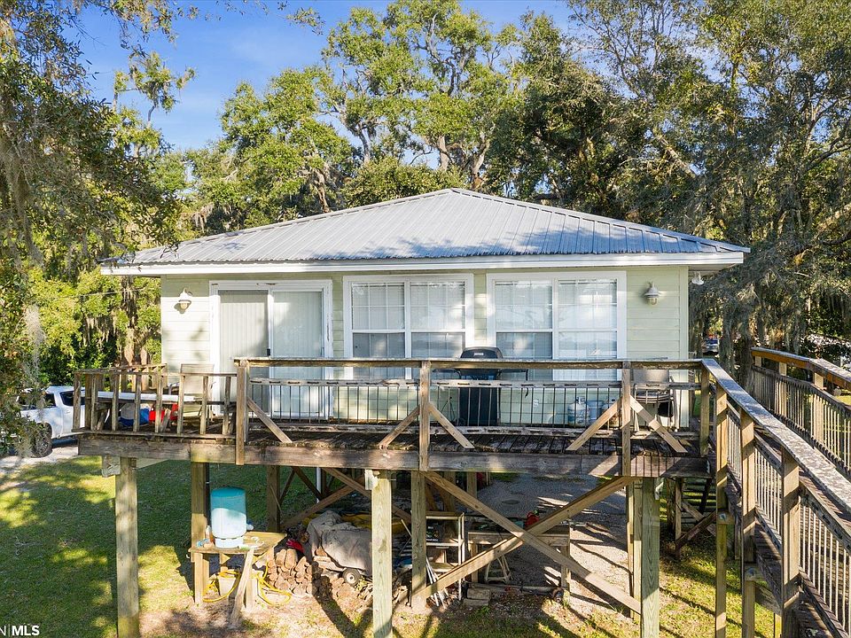 COTTAGE ON BEAUTIFUL WEEKS BAY--From your back deck you can watch as the sun bursts with colors as it slowly melts on the horizon. You will surely think you have made it to paradise. The cottage sits on three-quarters of an acre covered with oaks over 100 years old and azaleas that burst with color each spring. The lot is approximately 75 feet wide and over 500 feet deep giving you plenty of room to park your boat, RV, cars or build another cottage. With the 70 feet of waterfront on Weeks Bay there is room to build a pier with boat dock. And as for fish – OH MY! This agent has caught 1000’s of trout, flounder and red fish just a few feet from the property’s sea wall. The house is a raised beach style, so you don’t have to worry about flooding. It has 2 bedrooms, 1 bath, a nice kitchen and living room. From the back deck you will not only see amazing sunsets, but the dolphin show up nearly every morning and afternoon and put on a show. Don’t let this pass you by. Schedule your appointment today.