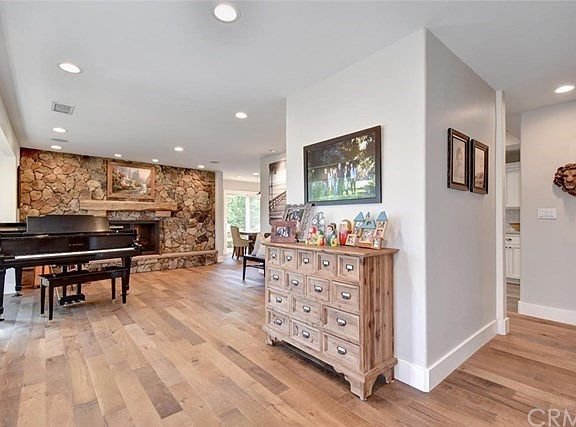 Serene and organic interior combines Luxury and High tech features for a family friendly and entertainment style home Located on one of the most sought after street locations in Rossmoor. Beautiful Solid wood and leaded glass entry door with Internet Remote lock welcome you to this prestigious home featuring a Gourmet Kitchen including Thermador 6 burner gas stove top plus professional indoor grill and vent hood, custom white cabinetry and quartz counters, Solid white oak flooring thought with 6" base board and craftsman detail trim, Real stone fireplace with 100 year old mantel and front windows with automatic shades. Living room has 100 year old beam Ceiling detail, Built in with barn door entertainment storage and audio video center with 80 inch TV w professional Yamaha receiver and sub-woofer with surround sound and DVD/Blue-ray controlled by internet phone app, Master custom ceilings w/5 speaker surround 65 inch Samsung TV, Double door walk in closet and Separate office retreat off master with custom built ins with dual desks, Master spa bath w/ soaking tub, steam shower. Dual sinks,Travertine and marble, Built in ample storage and access door to High ceiling Covered patio, exterior entertainment TV and down lights, backyard grotto Jacuzzi with waterfall and pebble-tech pool. Just about a dozen houses down from Rossmoor Park and in Award winning Los Alamitos School District.