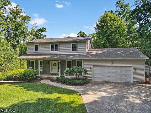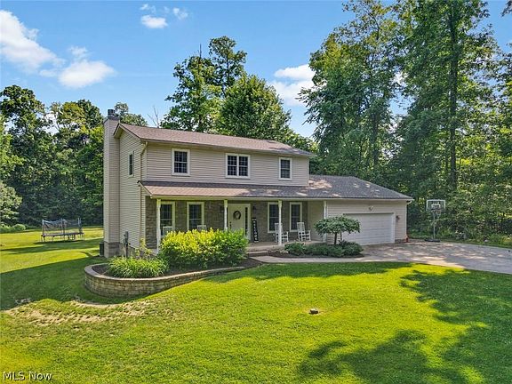 Privacy and seclusion is what you will find when you drive back the driveway to this custom built colonial style home surrounded with 5 acres of woods. As you approach the house take note of the well kept landscaping with a front porch where rocking chairs await. Take a moment to sit and listen to the birds chirping and take a deep breath. As you enter the home a grand foyer awaits with high ceiling. Formal living room, half bath, dining room, family room, updated kitchen, with doors leading to the large deck for entertaining, and laundry room are what you will find on the first floor. The kitchen has fresh paint, and refinished hickory floors that were custom made with trees found on the property. The upstairs includes master suite with large walk in closet and generous sized master bathroom. The main bathroom includes claw foot tub and shower, and two more generous sized bedrooms. If this is not enough space, wait until you see the custom bar and finished basement that comp