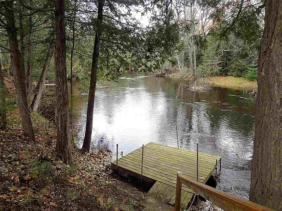 Imagine waking up in the morning to the sound of birds chirping; the river bubbling; peace and tranquility. This doesn't have to be a dream; you can have this lifestyle every day! Over an acre with 100' of river frontage, you'll find a spacious living room with patio doors to a secluded deck. A nice size kitchen with huge window overlooking the backyard & river. Allow the dogs to romp in the fenced enclosure. There's a screen house that is great for storing toys, camping in the summer. Listen to the voice of the river. It's calling to you. Find serenity in this ever-changing world.