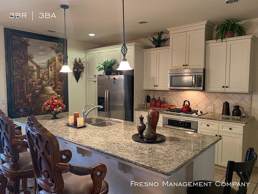 Live the country club lifestyle with a home right on the 5th fairway of Copper River golf course. Wake up each morning to a stunning view out your back window to the peaceful greens and elegant trees of the course. This comfortable floor plan makes good use of the space and offers a kitchen with plenty of storage and a spacious counter with decorator granite, hardwood-like flooring, pendant lights & designer tile backsplash plus stainless appliances and pre-wired alarm system. Landscaped backyard is included. This home comes complete with all the Granville Eco-Smart features including 2x6 extra deep exterior walls allowing more insulation, tankless water heater, cool roof tiles and much more meaning lower PG&E bills! Handsome white cabinetry throughout and upgraded flooring. Clovis Unified School district. rent is $3,000.00 without the furniture and $3,500.00 fully furnished. Corporate housing welcomed. Please call today to schedule a viewing! Fresno Management Company 559.500.4858 DRE#01930950 Community Club House And Pool On Golf Course