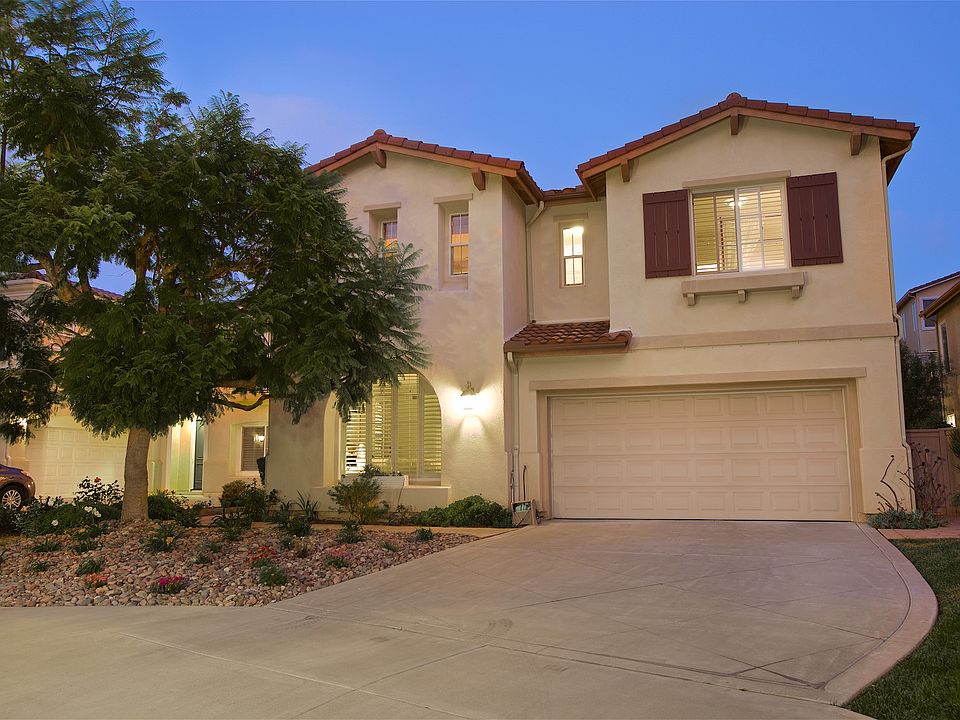 4 Bedrooms + Loft & Bonus Room (Optional 5th Bedroom) Handcrafted by Standard Pacific this distinctive Versailles Collection in Sansonnet is meticulously maintained and upgraded throughout. No detail has been overlooked, from the drought tolerant front yard and custom scored driveway to the impressive formal entry with soaring ceilings and elegant winding stairway with gorgeous handcrafted cherry handrails. This spacious St. Chapelle model featuring 4 bedrooms with each bedroom having an en suite bathroom, a large bonus room (optional 5th bedroom) plus an open loft area. Gourmet kitchen with beautiful European-style raised panel cherry cabinets, granite slab counter tops with full granite backsplash behind stove, recessed lighting, dual ovens, convenient food preparation island plus separate breakfast area. Spacious Master Bedroom suite with luxurious Master bathroom featuring tile surround deep soaking oval tub, separate his and her lavatories, glass enclosed shower and dual walk-in wardrobes. Desirable floor plan with full bedroom and 1 1/2 bathroom on first floor and three bedrooms, bonus room, loft and full size laundry room with built in cabinets and wash area on second floor. Travertine tile and new carpet throughout. Ideal for indoor-outdoor living with a beautiful back yard centered around a large stamped concrete trellis covered patio surrounded by fruit trees including lime, apricot, lemon and avocado. Convenient coastal-close location within the Torrey Hills community of Carmel Valley and within the highly ranked Del Mar Union and San Dieguito Union school districts. This home is walking distance to Ocean Air Recreation Center and Ocean Air Elementary School. Highly desirable location set back from busy streets and away from road noise but with easy access to schools, shops, restaurants, theaters and minutes to beautiful beaches and parks. No HOA and low Mello Roos.