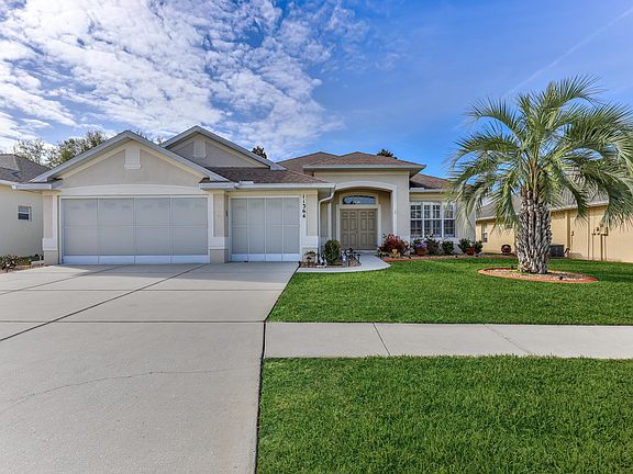 4/3/3 REMINGTON MODEL in the Wellington, a 55+ Community. Your tour of this fabulous home begins with it's great curb appeal, classic design, roof lines and it's many exterior upgrades including the screened garage, curbed garden beds, stone mulch, it's fully guttered for leader system and elegant tile and double door entrance. You make entry into the homes formal living space flanked by it's formal living room and Dining rooms with contemporary color pallet, 20' tile flooring and plantation shuttered window treatments and the fabulous Bernard Pecaso Chandelier trimmed with Swarovski Spectra Crystals. Pass through the arched transition into the Family Room, same tile and color pallet, rounded corners and recessed indirect lighting. The open floor plan turns your eye left towards the Granite Counter Topped Breakfast Bar and Updated Kitchen, 42' wood cabinets, tile back splash, newer fixtures and appliances. The spacious Breakfast Nook beams with natural light through the Plantation Shutters and Glass Sliders that overlook your fantastic lanai. The Lanai has tile flooring, is fully enclosed with Sunshades, a separate entrance to a full bath and a peaceful view of a retention area. The Master Bedroom has been freshly re-carpeted, with trey ceilings elegant color pallet and fixtures and an equally classic Master Bath with his and hers vanities and closets, separate walk in shower and garden tub. There are three more bedrooms, a third bath, laundry room, a three car garage, water softener & filtration system, new air in 2018. Move in ready. Come and see.