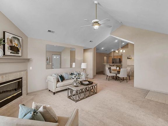 - Features: Carpet, Ceiling Fan(s), Fireplace