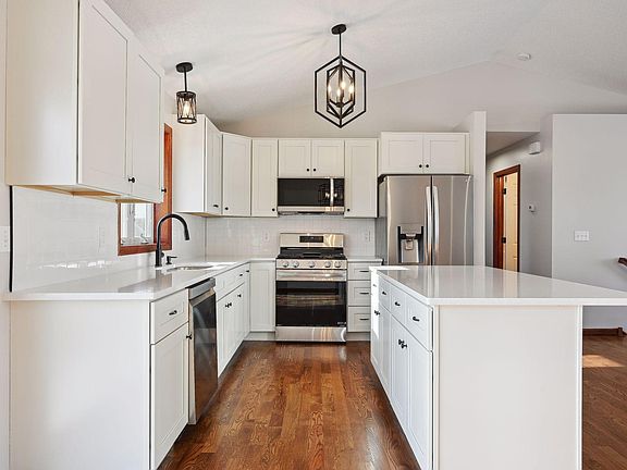 Fully renovated 3 bed 2 bath walkout! Brand New kitchen cabinets, quartz countertops & stainless steel appliances. New beaming hardwood floors & vaulted ceilings. Updated bathrooms. Fresh paint & new carpet throughout. Spacious lower level family room & plenty of storage. 3 Car Garage. Conveniently located near parks, amenities & major highways. Move right in and enjoy. Schedule your showing today!