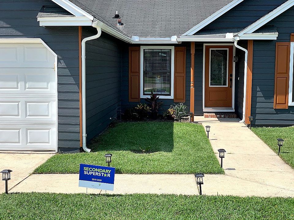 Large 4br 2ba with two car garage, formal living room, eat in space in kitchen.