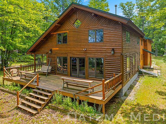 All sport lakefront dream home w/100' of frontage on Big Bradford Lake! Primarily full log, part frame built with log siding & steel roof. Large open main floor with vaulted ceilings, newer kitchen featuring knotty maple cabinets (2015) & cozy pellet stove & door wall lake views. 3 bedrooms upstairs, one with space to build closet. Entry to 16' x 40' bonus room with huge potential. 32' x 40 att. garage is frame built w/log siding & steel roof. 32' x 28' 13 block basement with wave air re-circulator, auto dehumidifier, bilco door, FA furnace (2021), central air (2021) and HW on demand (2021). WHEN USING THIS SALE AS A COMPARABLE PLEASE NOTE: Seller accepted discounted cash offer in exchange for easement title exception