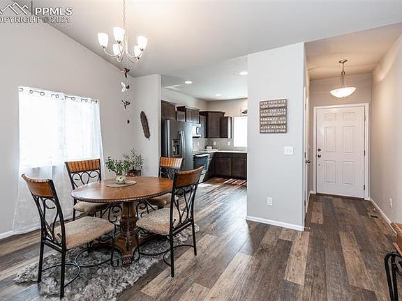 Cozy rancher with all main-level living! Upon entering through the covered porch, you will notice a bright and open floor plan with vaulted ceiling and upgraded luxury vinyl plank flooring. Spread out in the spacious living room and dining area. You'll feel right at home in your gorgeous kitchen featuring granite counter top, slate appliances, modern tile back splash, recessed lighting, upgraded cabinets with soft-close drawers and a storage pantry. Relax in your large master suite offering a vaulted ceiling, ceiling fan, adjoining full bathroom with tub and large walk in closet. Two comfy bedrooms offered as well as an additional full bath featuring upgraded soft-close drawers, standing shower, granite counter top and to-the-ceiling custom tile. Separate laundry area with storage closet upon entering the two-car attached garage. Front yard is fully maintained by HOA and backyard is currently maintenance-free, ready for you to create your dream yard (auto sprinkler panel included, if grass desired.) The Woodman Hills community features amazing park and recreation amenities including indoor and outdoor pools, an exercise facility, a disc golf course and so much more! Come take a look... this home has been well cared for by one owner for the last three years.