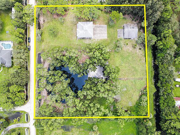 Bring your boat and your toys to this 2.5-acre property in Jupiter Farms. Reverse floor plan which consists of bottom floor open for garage/storage and 2-bedroom, 2 baths on the second level. No appliances but opportunity to make it your own. Bonus Detached 2 car garage in the rear of the property. Enjoy the country living with a short drive to the main access road to Jupiter, I95 or the turnpike.