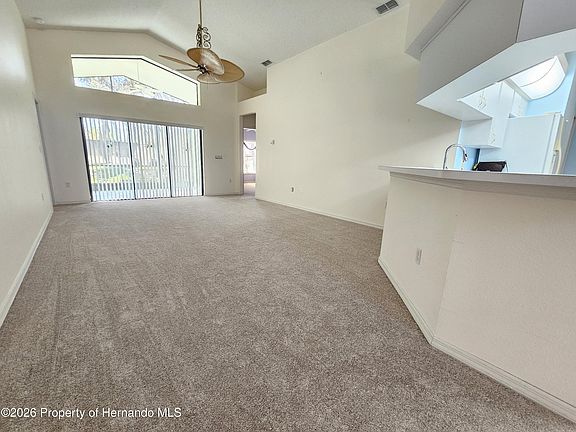 Welcome to Wellington at Seven Hills, a premier 55+ gated community offering resort-style living. This well-maintained 3-bedroom, 2-bath, 2-car garage pool home combines elegance, comfort, and Florida charm, and features brand-new carpet and a new water heater.