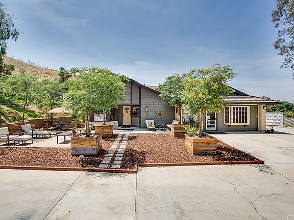Rare Find,!! This gorgeous single story home sits on a hilltop with 2.12 acres and endless views!! The property is completely gated with solar powered gates. The manicured grounds include an organic fruit orchard with a variety of trees and raised vegetable beds. The property is on a controlled watering system with drip line irrigation for water conservation. The front courtyard has a cozy feel but spacious enough for entertaining. The backyard features an outdoor wrap around alumina wood patio cover perfect for relaxing outdoors while taking in the summer breeze. This house is turnkey and has been remodeled from top to bottom with too many upgrades to list ! Some upgrades include a brand new roof with a 50 year warranty, new windows, beautiful tile flooring , crown molding, custom paint inside and out! The kitchen has been remodeled with new cabinetry, granite and stainless steel appliances. Both bathrooms have been remodeled as well! Open and airy with natural light this home is very unique! Pride of ownership. This home is a must see to appreciate!
