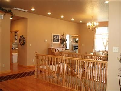 Newer ranch loaded with street appeal and upgrades galore inside. This 2253 sq ft home hosts an elegant entry with 10' ceilings, hardwood flooring and open view of the Formal Dining and Living areas. The kitchen has upgraded cabinets and granite counter top on the island breakfast bar, a Jen-air cooktop and refrigerator stays. The open concept of the upstairs rec room is loaded with transom windows and a cozy fireplace. All the bedrooms have tray ceilings, fan light combinations, carpeting good size closets. The Main BR suite has a jetted tub plus an oversized shower and double sink vanity plus a walk in closet. The basement has huge open concept rec area, two could be bedrooms and 3/4 bath. Extra storage in the furnace room. Outside the yard has an in ground sprinkler system and is fully landscaped. 3 car attached garage. Priced to sell. Home Warranty is included for Buyer's peace of mind!