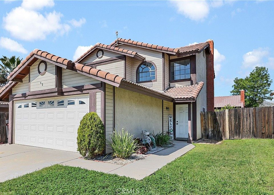 Welcome to this charming two-story, 3-bedroom, two and ½ bathroom home in an established North Moreno Valley community. As you enter, the inviting entrance unfolds into a spacious living room with a cozy fireplace. The adjacent dining area and kitchen make this home perfect for gatherings and everyday living. This home offers an ideal blend of comfort and functionality. The backyard, accessible from the dining area, provides a private retreat for relaxation or outdoor gatherings. Enjoy LOW taxes, no HOA, and a prime location near schools, parks, and easy freeway access.