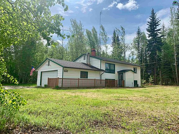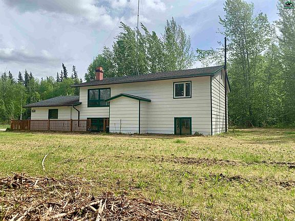 3 Bedroom 2 Bath Home on a nice lot conveniently located close to both North Pole & Fairbanks, between Eielson AFB and just outside the back gate of FT Wainwright, with easy access to the Bike Path & Public Bus Route. Within walking distance of Ticasuk Brown Elementary School. Home has a Large Master bedroom upstairs with Full Bath, Living Room with Fireplace, Kitchen with Stainless Steal Appliances & Dining area with access to a back Deck all upstairs. The Upstairs Master Suite has a Sitting/Dressing area that could be another bedroom or office area/den. Laminate flooring in kitchen & living room. The Lower level has Arctic Entry Way and Laundry area, 2 bedrooms, Full Bathroom and Family Room with Wood Stove. Laminate flooring also downstairs in the Family room. Newer Boiler and Roof. Exterior just freshly Painted. Interior is being painted also.