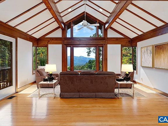 A rare find among Stoney Creek homes—this gorgeous property sits high on Crawfords Knob mountain and will check off just about all of the boxes! Designed by local architect Patrick Farley and built by Robb Construction, you will be impressed with the materials and design, including local soapstone, maple flooring, and Heartwood cabinetry. It's perfectly oriented towards the mountains with each living space and each bedroom having views. Solidly designed and built, the house is well insulated with 2x6s; ask for the special features list which includes extensive care and maintenance of all components of the home. Both the kitchen and primary bathroom have had renovations in between, keeping the home current, functional, and melding well with other natural materials and design elements. For outdoors lovers, there are several decks/patios, including a screened-in porch and also terraced vegetable and flower gardens. Paul's Creek waterslide and hiking trail is a 1/4 mile away. These mountainside Stoney Creek offerings with views are few and far between—don't miss out on this exceptional and wonderful Nelson County gem!