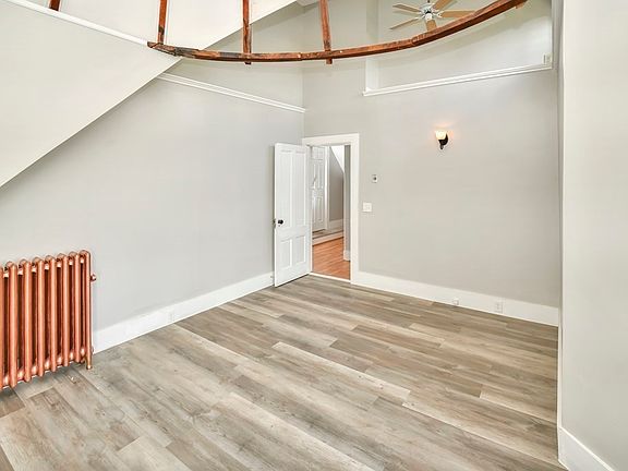SO SPECIAL. Updated, sun drenched 2 bedroom 1 bath penthouse condominium in Victorian Mansion. Charming interior features large bedrooms and breathtaking round living room with high, conical ceiling. Brand new laminate & fresh paint throughout. Enjoy beautiful rays of natural sunlight through the multiple, perfectly placed skylight windows. Kitchen upgraded with stainless steel appliances and butcher block countertop. All utilities, including heat & electricity, in HOA fee! Off street parking. Minutes away from highway access (I-91. & I-90). Conveniently located. Area hospitals and universities, restaurants, shopping in close proximity.