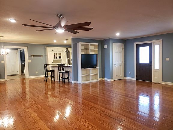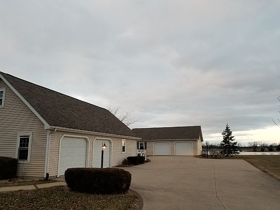 Amazing one story completely remodeled ranch on over an acre of land. This 3 bedroom, 2 bath home has a very open concept and is perfect for entertaining. The kitchen features all new appliances, pantry and breakfast bar. It over looks the dining area and main living room. The spacious living and family room boast a two way fireplace that separates the two. Family room has a custom bar on one side with a floor to ceiling fireplace and newer carpet on the other. It has glass patio doors open to the cement, covered patio over looking the 8 acre lake. Split bedroom plan with 2 bedrooms and a bathroom on the west side of the home. Master has it's own separate wing, a remodeled bathroom with a tiled walk-in shower and a custom built closet. Home also features a fenced in yard, firepit, 30 x 40 heated out-building with a half bath and a concrete Drive-way. Home has mature trees and beautiful landscaping. Updates: Furnace, A.C, all new windows, fresh paint, new bathrooms, fence, updated mudroom/laundry.