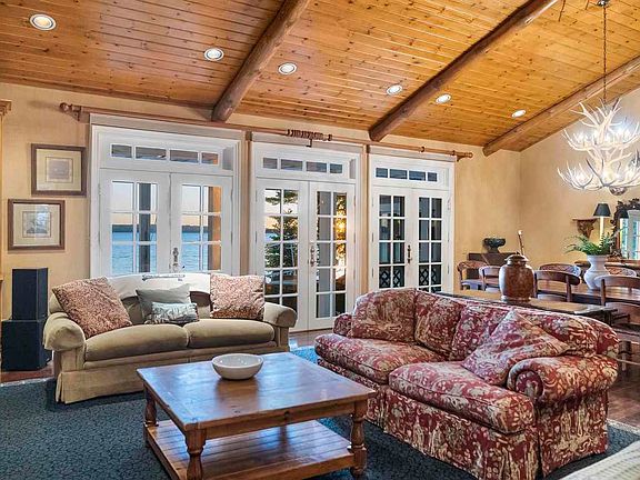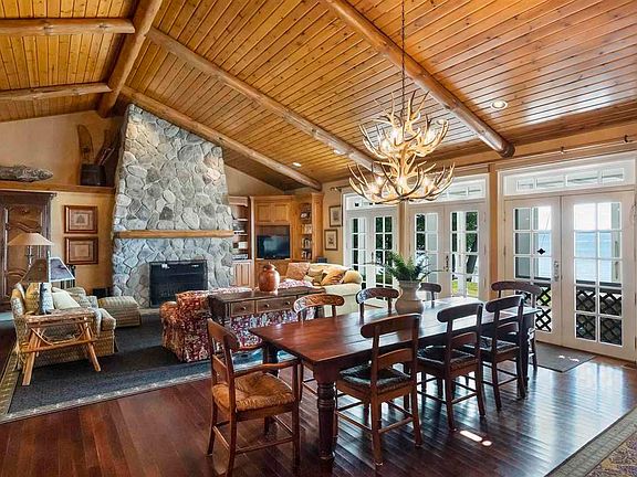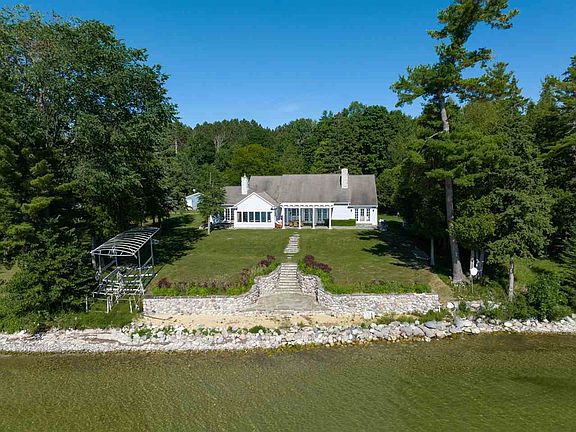 Revel in natural beauty, privacy and tranquility at 1137 Eagles Nest Drive set on 11 wooded acres and 300' of Burt Lake frontage. Stunning views of Burt Lake greet you immediately as you step inside the 3,470 sqft main house. The primary house features a floor to ceiling stone fireplace, 3 bedrooms, 4 bathrooms, and custom furnishings from A Quiet Moose. All furnishings stay! Wonderful open floor plan with a large kitchen, dining and living space. The master suit is separated by a study/den area with its own fireplace. The master bath features a soaking tub and walk in closet. Separate wing for guests with adjoining beds and baths at the opposite end of the home. Enjoy sunrises and sunsets from the large sun porch with panoramic views of Burt Lake. Two guest houses allow for plenty of room for entertaining multiple families and lots of friends while maintaining peace and privacy in your main home. Other features include: hardwood floors, wet bar, and cathedral ceilings. Do not miss your rare chance to own a beautifully maintained home in one of the most sought after areas of Northern Michigan.
