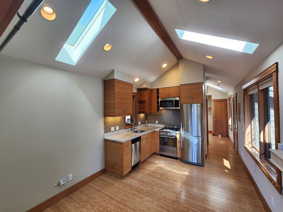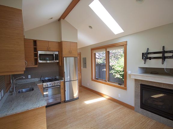 This bright and sunny, eco-friendly micro-home was built in 2011 and has been beautifully maintained by its owner. The private front yard and large porch feature huge double-paned sliding doors which lead to a spacious living room and kitchen area. Vaulted ceilings, skylights, and gorgeous natural wood doors and trim are found throughout. The contemporary kitchen features stainless steel appliances, granite counters, and solid bamboo cabinetry. The bedroom offers two large remote-control skylights and sunshades, and ample closet space. A cozy and serene shared garden is found through a bamboo gate on the side of the house and features a small patio, beautiful wildflowers, and a mature persimmon tree. This home is located in Berkeley's Westbrae District, a short distance from North Berkeley BART station (Bay Area Rapid Transit) and Transbay bus and AC Transit bus stops (one block). It is close to Westbrae Biergarten, Gilman Brewery and Berkeley Bagel. Nearby shopping stores include Monterey Market, Berkeley Natural Foods, Tokyo Fish Market, and Whole Foods. WalkScore: 91. Featuring: Stainless Steel Appliances including Microwave and Gas Range Granite Counter tops Solid Bamboo Cabinets Bamboo Floors (engineered) Oversized Multi-paned Windows Vaulted Ceilings Operable Skylights and Shades (in bedroom) Custom Sandstone Mantel with Gas Fireplace Shower over Japanese Soaking Tub Bathroom features a Solar Light Tube and Heated Floors Large-format Stackable Washer and Dryer Tankless Water Heater Covered Porch Cable and Fiber Ready Planted Garden and Patio Area Separate, Detached Storage (shared) Off-Street Parking (for 1 car) 330 sq.ft. (approx. per title records) Not Furnished Pets OK- cats and small dogs (under 25 lbs)- subject to owner approval, $500 pet deposit per pet, renters insurance. Breed restrictions apply. No Smoking Rental Amount: $2,475.00 per month (one-year initial lease term) Security Deposit (due at lease signing): $3,000.00 Available Now Tenants to pay all utilities (except garbage and recycling collection fees) Haven Real Estate Rental Amount: $2,475.00 per month (one-year initial lease term) Security Deposit (due at lease signing): $3,000.00