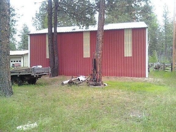 This 13.6 Acre has a roping and riding arena, with a 30X36 shop, many out buildings, treed with Ponderosa's, pond used for irrigating.