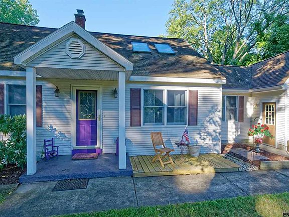 When you require extra privacy w/out sacrificing the daily conveniences of life. Situated on a private park like setting in the Town Of Colonie bordering the Pine Bush sits this nearly 2000 sq ft Cape cod home. Open flr plan includes 2 story living rm w/ 2 skylights, soaring ceilings, gas FP, & HW FLRS. Breakfast area leads out french doors to large deck overlooking wooded lot. 3 BR's on 1st flr w/ full bath. Master suite on 2nd flr features full bath & plenty of closet space. 2nd flr loft could be office.