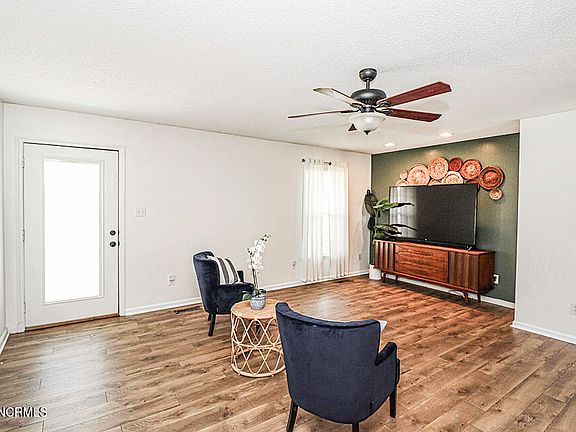 As you step inside, you'll be greeted by updated laminate flooring that enhances the home's appeal while providing durability for everyday living. The newly remodeled kitchen is a chef's delight, featuring striking butcher block countertops and a charming brick backsplash. The stainless steel farmhouse sink adds both style and functionality. The spacious dining room leads to the rear patio!