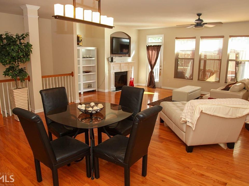PRICE IMPROVEMENT!! This wonderful 3-story townhome is situated in a quite community. Split staircase goes up into an open concept floor plan w/hardwoods on the main level, GREAT for entertaining family or friends. Owners suite offers trey ceilings & ensuite with soaking garden tub & separate shower. Lower level offers spacious bedroom w/ full bath. Large secondary bedrooms on the upper level. Gourmet kitchen houses a kitchen island w/plenty of cabinetry for storage. Insect net gazebo on patio that comes with the home!