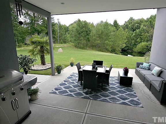 Best of both worlds. Ranch Modern masterpiece in beautiful private rural setting 6.4 miles from shopping & highways. Close to RTP, downtown Raleigh, and more. Waterfront views with beach area. Well thought out open floor plan. Large garage with tons of storage. Beautiful wood paneling in living room with stone tile floors and soaring ceilings. Open living room-kitchen concept. 8 acre park like retreat. Combine this home with MLS 139366 to create your own private compound. Shows like a Model!!