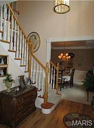 Prestigious Countryside in Des Peres! Impeccably maintained! Dramatic Two Story Entry Foyer with T-Staircase. Elegant Dining Room with Coffered Ceiling and Crown Moldings! Bonus Music/Sitting Room! Bright Sun Filled Kitchen Compliments Skylights, Soaring White Cabinets, Center Island, Computer/Planning Desk, Gleaming Wood Floors and Walk-in Pantry! Adjoining Breakfast Room Opens to Large Deck for Quiet Morning Coffee! Family Room Boasts Five Window Bay, Woodburning Fireplace and Web Bar for Entertaining and Convenience! Laundry/Mud Room Off Garage Entry! Large Master Bedroom with Large Walk-in Closet, Separate Shower/Tub Full Bath! Three Additional Bedrooms and Hall Bath Complete Upper Level! Additional Living Space Awaits Buyer in Lower Level with Large Recreation Room, Full Bath, Bedroom and Abundance of Storage! Exit Thru French Doors onto Patio with Beautiful Park Like View!