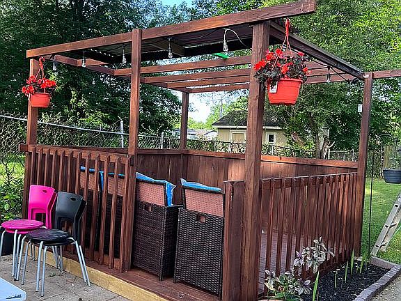 There’s a two bedroom apartment on top of the garage. A canopy Was added on to the property summer of 2022.