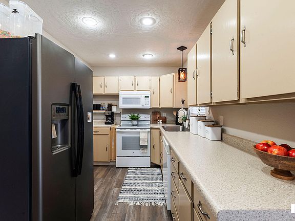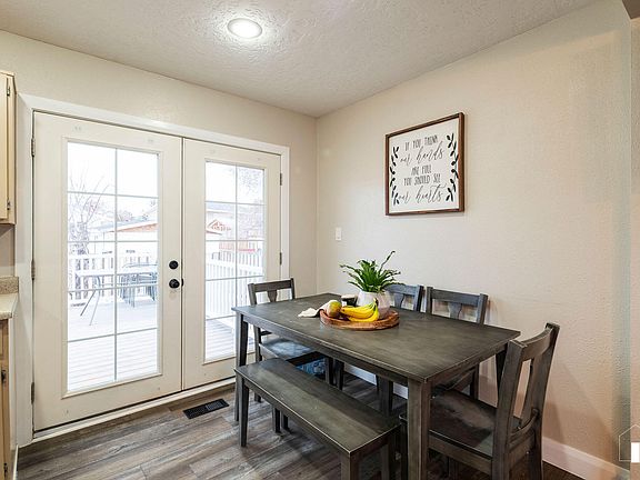 Charming 4 bed 2 bath home at the end of a cul-de-sac street centrally located close to schools, restaurants, shopping, & freeway access. Recently updated with new roof, gutters, downspouts, gas furnace, central a/c, water heater, LVP flooring, paint, lighting, & more! Large bedrooms & spacious family & living rooms with wood stove. Enjoy the mountain views from your dining area with French doors that open to a large Trex deck that's great for relaxing or entertaining. Fenced backyard with mature landscaping, fruit trees, patio, & block wall garden planter. Walkout finished basement with extra storage room & outdoor storage shed included. So much to love & see so call today before it's too late!