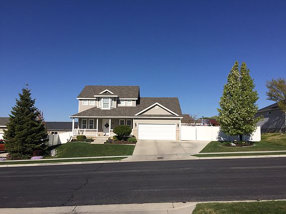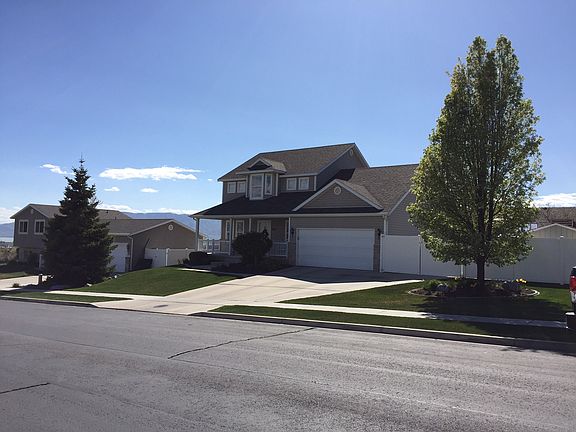 Beautiful Home in highly desired neighborhood. Amazing views of Mountains and Lake. Home is full of upgrades with wood floors, tile, crown molding, custom kitchen, double over, wainscoting, batten board, beadboard, 7" baseboards, fully finished basement. Yard is beautiful, fully fenced and comes with large fenced RV/Boat pad, in ground trampoline, swing/play set, basketball court, and a 8'x10' shed. Homes in this neighborhood sell quick and this home won't last long.