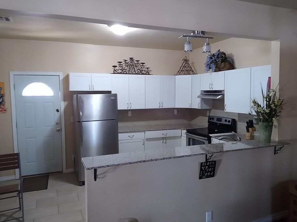 This house is a 1 bed/1 bath, recently renovated, all new, electric, in the Plaza District and fully furnished. It is a short-term rental: 1 month, 6 months, or let us know what you're interested in. This renovated property in the Plaza District is quick access to the happening Urban Core. This is a large one bed, 1 bath, completed renovated house. The large living room (with TV) opens up to the kitchen with a granite bar, tons of cabinets and countertop space, tiled backsplash, stainless steel appliances: fridge, stove & dishwasher. There is eating space in the kitchen with small table and chairs. Good size bedroom with queen bed and dresser, TV, large walk-in closet with a stackable washer and dryer in it. Nice size bathroom with bathtub and shower. Hardwood flooring throughout the unit. Ceiling fans in bed and living. Vaulted ceiling front porch. Covered back porch and fenced in yard. Parking off street in the driveway. Short walk away to all the Plaza restaurants, bars, shops and galleries etc. Short drive or bike ride to: all the best restaurants, OCU (OKCU), St. Anthony hospital, Downtown OKC, Midtown, Uptown, Paseo, OU Health/Health Sciences Center and everything cool!! Easy access to I-40, I-235 (Broadway Ext.) I-44 and NW Expressway. All utilities paid. Short term lease: 1 month, month to month, 6 month, etc.