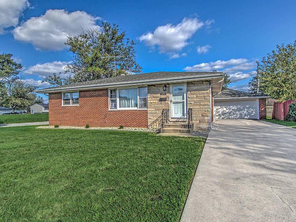 ALL BRICK, 3Bdrm RANCH Home on Corner Lot w/ 2.5 Car Garage and Partially FINISHED BASEMENT is MOVE-IN READY! Newer Storm/Entry Doors WELCOME YOU into Tiled Foyer opening to BRIGHT Living Rm w/ Large Picture Window and HARDWOOD Flrng. Fresh, Modern, Gray Paint Palette flows throughout Entire Main Level. 3 Main Flr Bdrms, All have Exposed HW Flrng and share Full Bth w/ Tile Flrng and Shower Surround. Open Concept Pass-thru from Living Rm overlooks Nice Size Eat-in Area. Kitchen equipped w/ Applcs offers Solid MAPLE CABINETRY. Full Bsmt features Finished Recreation Rm w/ STONE Wall and BRAND NEW, Earth-toned, Wood Laminate Flrng. Laundry Rm, along w/ LARGE Workshop Area, offers Tons of Storage. Side-Drive leads to Garage and Partially Fenced Yard for Privacy. Rock Landscape Edging provides Sophisticated Look w/ Low Maintenance. 100AMP Electric just Updated for Peace of Mind. Well Maintained Home is READY for YOU in Sought-after Location, minutes from Highway Access and All Conveniences!