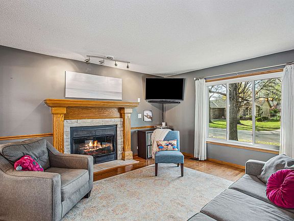 Showings start Thursday, April 3rd. Welcome home to this exceptionally well maintained two story gem tucked away in a quiet cul de sac in Northwest Wichita with NO SPECIALS. From the moment you arrive, you will see and feel the pride of ownership. This home is truly move in ready and checks all the boxes. Step inside to fresh interior paint in understated neutral tones, and take in the stunning original hardwood floors that flow through much of the main level. Nearly every room has been thoughtfully updated with modern lighting and fixtures, and large windows throughout the home frame beautiful views of the mature trees and lush landscaping. The inviting living room features a striking stone faced wood burning fireplace with a new hearth, perfect for cozy evenings, and seamlessly connects to the formal dining area and spacious kitchen. The kitchen is a showstopper, boasting updated countertops and backsplash, sleek stainless appliances including a gas range, new cabinet hardware, and a charming breakfast nook that is perfect for casual mornings. The main floor also includes a convenient half bath with updated lighting and faucet, a dedicated laundry room with custom shelving and storage closet, and even a pony wall to help keep things tidy. Upstairs, the expansive primary suite features a recessed ceiling, new fan and lighting, and a full en suite bath complete with dual vanities, a make up counter, tub and shower combo, and a generous walk in closet. The two additional bedrooms are impressively sized, filled with natural light, and offer excellent closet space. The updated hall bath ties it all together with tasteful new fixtures and hardware. The finished basement adds even more value with a versatile family or rec room, built in wet bar and desk area, a fourth bedroom with egress window, another full bath, and ample storage space. Enjoy low maintenance for years with over $23,000 in siding, paint, and window updates and replacements!! Outside, you will love the fully fenced yard, covered patio, small deck, two peaceful ponds, and even a potting area for your gardening projects. A full sprinkler system with a new backflow preventer keeps the yard looking its best year round, and there is a designated play area tucked to the side, perfect for outdoor fun. Just beyond the back gate, you will find easy access to neighborhood walking paths, greenbelt areas, and scenic ponds. You are also just minutes from schools, shopping, dining, and quick highway access. Do not miss your chance to own a move in ready home in this desirable area!