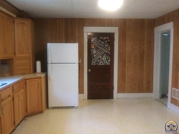 PRICE REDUCED! Cute Oakland area home with 3 BEDROOMS, 1 bath, hardwood floors, big kitchen with adjoining utility/laundry room w/ interior access to underground storm shelter, all appliances including washer/dryer stay. BIG covered front porch to sit and enjoy the breeze. Fenced in back yard area for little ones and pets to enjoy plus large parking space area and a back deck for barbecue fun! Needs a little finish work here and there, just add your cosmetic touches to make this affordable gem sparkle!