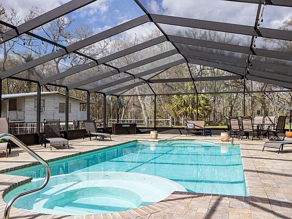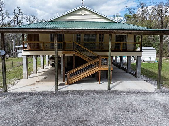 Nestled on the banks of the picturesque Suwannee River in Branford, FL, this stunning 3-bedroom, 2-bathroom home offers the perfect blend of comfort and adventure. Currently operating as a successful Airbnb, this income-producing property can be a turn-key investment & a scenic getaway. Upon entering, you are greeted by a spacious living area adorned with a charming gas fireplace and walls featuring beautiful cypress tongue and groove detailing, adding warmth and character. The home boasts covered porches both at the front and back, inviting you to relax and enjoy the breathtaking river views. One of the standout features of this property is its enclosed inground saltwater pool with a spa, ensuring year-round enjoyment and relaxation. Adjacent to the pool area, a convenient half-bath bathhouse adds to the ease and comfort of outdoor living. For those who love outdoor entertaining, a covered pavilion overlooking the river awaits, complete with a fish cleaning station nearby—perfect for preparing your fresh catch after a day on the water. A floating dock provides easy access for boating enthusiasts, making it effortless to explore the Suwannee River’s natural beauty. Inside, practicality meets convenience with amenities, including an elevator and a whole-house generator, ensuring ease of access and peace of mind for residents and guests alike. Whether you're looking for a peaceful riverside retreat, an income-producing investment, or both, this property has it!
