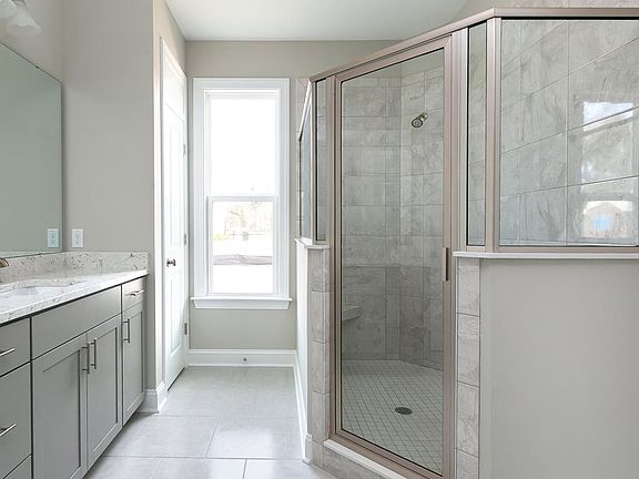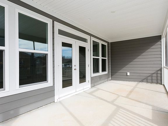 Bright, open Kitchen offers a large island with breakfast bar, white cabinetry, Colonial White granite countertops and stainless steel GE appliances. Wood floors throughout the main living space and Den. Coffered ceilings, double quartz vanities and a glass enclosed shower complete the Owner's Suite. Screened Porch offers room to enjoy the outdoors. * This Move-In Ready home in Cresswind Charleston is located in Summerville. Some home images may contain additional upgrades, finishes and/or features not included. Floorplan shown is base model and may not include structural options in this home.