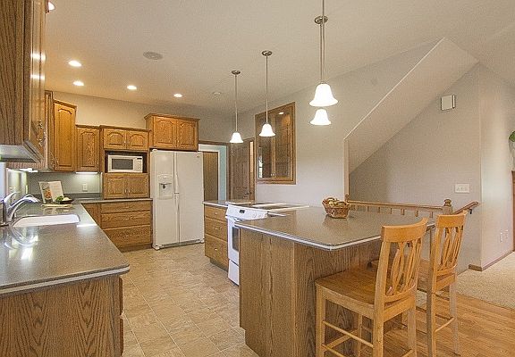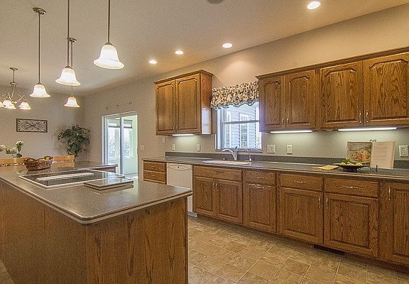 Wonderful, ranch with open floor plan and natural day light. Main floor features, office, large living room with fireplace. Master bedroom, with large master bath featuring tub with jets, shower and double sink vanity. The kitchen features, custom built oak cabinets, pantry, cooking island, appliance garage, solid surface counter tops, breakfast bar and built in china hutch. The dining room has patio doors to a 3 season porch and maintenance free deck. The main floor laundry is located near the kitchen.