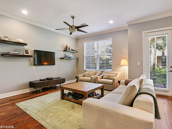 Just reduced 2.3.17! Agent owned. Impeccably upgraded (over $100,000) Aurora model is a must see! Built 2015! Master bdr and 2 add'tl bdrs upstairs w/den/loft. Gourmet kitchen with double ovens, stainless steel appliances, large pantry w/double doors, quartz kitchen countertops including backsplash, quartz bathroom countertops, walnut hardwood floors downstairs in open, airy floor plan, Berber carpet upstairs, recessed lighting throughout, modern ceiling fans (4) and lighting, crown molding, custom Benj. Moore paint throughout, tiled bar area, metal staircase, custom closets, balconies off 2nd and 3rd bedroom, impact glass, etc.! Hampton Cay location is unbeatable!