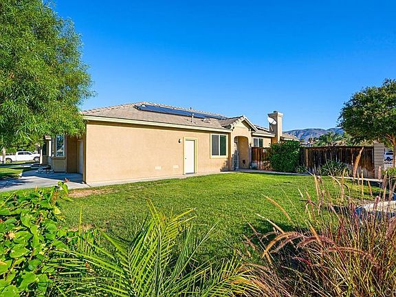 Come see this beautiful, single story, solar home with no HOA before it’s gone! Premium corner lot location with no neighbors across the street. Open floor plan with large kitchen overlooking the family room and sliding glass door leading to the backyard. Nice finishing touches on this home with plantation shutters and newer interior doors. Front and backyard are nicely landscaped with large alumawood patio cover perfect for entertaining. One of the best values in San Jacinto. Come on by to see us, you won’t be disappointed.