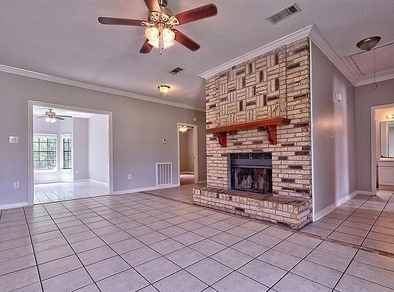 This cute 2 bedroom home is situated on an oversized cul-de-sac lot and the living room provides a radiant wood burning fireplace. The bay window and sliding glass door in the dining area lets in an abundance of natural lighting while overlooking the backyard. The wooden deck is great for BBQs and entertaining. Only a few minutes from I-12, shopping, and restaurants. Two outside sheds provide for ample storage.