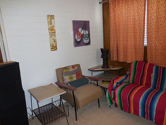 Mid Century brick rambler with 3 bed/2bath and AZ Room wants to find the perfect match, one that loves looking at her and thinking, ''What do we want to do? Or not?'', vintage all steel kitchen cabinets, original guest bath, tile and wallpaper! Original tile in one bedroom, others carpeted, LR/DR open into AZ room and out to backyard bringing the total square footage to over 1,300. Storage room attached and shed out back, water softener, reverse osmosis, blinds/curtains in the last five years. Exterior AC unit, furnace and water heater in the aughts. Whether you like to update or to preserve this little lady would like you to come by so she can look you over. Are you the perfect match?