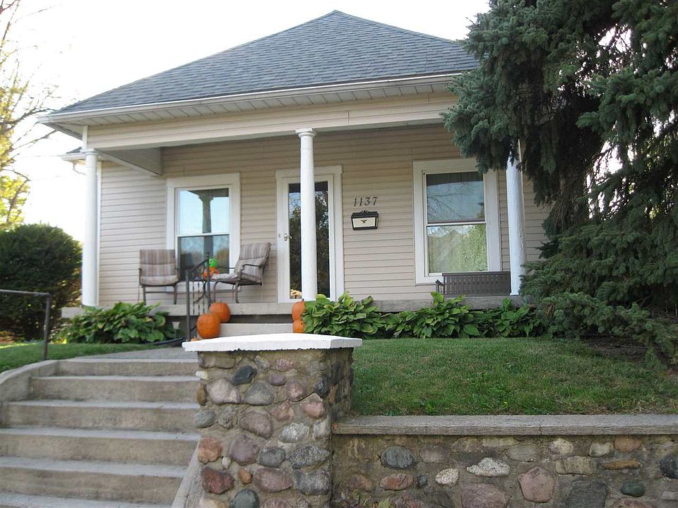 Maintenance free bungalow in good neighborhood. Lots of nice updates. Replacement windows in 2010, new furnace & C/A 2010. Hardwood floors in spacious LR, tile in eat-in kitchen with new backsplash. Separate utility room. 200 Amp box. Detached garage. Back yard completed surrounded by wooden fence. Lots of storage. New vinyl siding 2010. New sewer line.