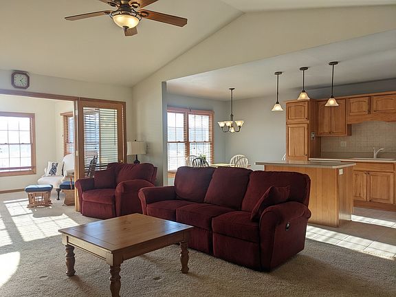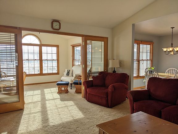 Location and modern! Ready to downsize but still looking for space and sunlight? This condo has it all; vaulted open great room with so many upgrades. Kitchen with hickory cabinets, sun room overlooking countryside and adding to your scenic views. Main floor features guest bedroom and bath, kitchen with island and breakfast area, living room with gas log fireplace, sun room, master suite with walk in closet and full bath with double vanity, laundry room w wash sink and attached garage is 21' x 23'. Lots of storage and cabinets throughout. Walk out lower level has that Southern exposure with daylight windows, high ceilings, roughed in for a 3rd full bath and ready for any additional space you might want or need. New deck 2019. New stove 2020.
