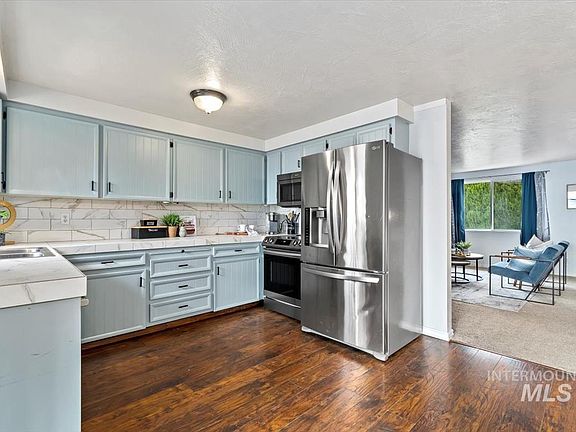 Welcome to this spacious 4 bedroom 2 bath home on a generous 1/3 acre lot with new 24x40 insulated SHOP w/electrical, two 10ft doors, wood stove for heat & 220v outlet. Park your RV & plug right in! This home is the perfect combination of comfort & functionality & offers something for everyone! Upstairs you’ll find a light filled living room, remodeled kitchen with tile countertops, stainless steel appliances & built in hutch. High end waterproof carpet, 3 good sized bedrooms & remodeled bath. Downstairs features newer LVP waterproof flooring, 4th bedroom, 2nd full bath, family room, rec space, & oversized laundry room with backyard access. Head outside for a seat under the covered deck & realize there is so much room for activities! Room to garden, sit by the fire pit, projects in the shop or just enjoy the peace & quiet of the country. Don’t miss the double side gate to easily park & store your toys. New roof & sheeting in 2017. Short distance to Indian Creek & downtown Kuna. No HOA! Welcome Home!
