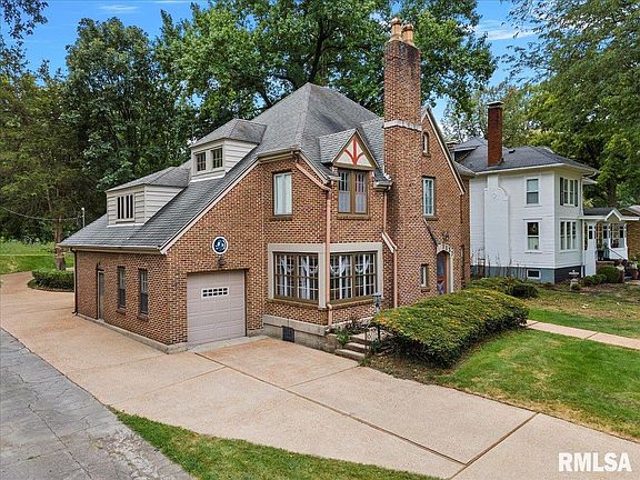 A 1930s English Tutor, Craftsman style home has so much to offer. Located on historic W. State St, minutes from downtown, Illinois College and Morton Ave. This full brick home features five bedrooms, two and a half baths, a large kitchen and a beautiful formal dining room. Hardwood floors throughout the home as well as custom stucco walls. All built by Andrew Lumber, so of course the wood work is second to none. In addition, the sunroom is a little nook of peace with a beautiful view! A spacious office area with an exterior door to back. Walk up attic that could be finished to ones desire. Attic fan for the cool nights ahead. So much character! The back yard is beautiful with tons of hydrangeas and mature trees. A tandem garage with two garage doors on each end, one is has an electric opener. A circle drive in the back for easy access and exit just adds to the uniqueness of the house. This is definitely a must see!