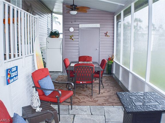 This nicely remodeled 2 bed/2 bath, open concept home boasts high ceilings and plenty of room to entertain. Updated kitchen with newer appliances, including island cooktop and wall oven. New high-end vinyl plank flooring in main areas and carpet in bedrooms. Enjoy relaxing in the outdoor screen lanai, new in 2019. New membrane roof in 2016. Spacious master bedroom with large 11x6' walk-in closet. Large master on-suite has dual sinks, shower and garden tub. The guest bedroom also has a walk-in closet for extra storage. All rooms are very spacious, and there is a utility room inside the home. Bayside is an active 55+ boating community with all the activities and amenities to keep you active. Bayside is centrally located between Ft Myers Beach and Sanibel with an array of shopping and eateries near by. Buyers in Bayside pay a $1900 capital contribution fee. All offers will be accepted until 6/27 at 5pm.