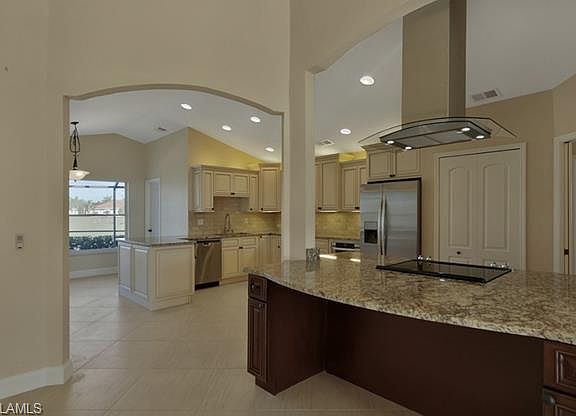 Partially furnished will negotiate most of the furnishing with agreed sales price. Come see a beautifully updated home top to bottom. Located in Cape Royal Country Club. Must see this home to appreciate all that has been done which makes it feel as if it were new. New 24" porcelain tile, cabinets in kitchen and all baths, granite countertops throughout, paint in and out, pool resurfaced and pavered. 2 new A.C. units installed. All new sod with curbing and five new royal palm trees, Driveway and front entry with all new pavers, Stainless steel appliances along with custom peninsula range hood over island. Rear southwest view to enjoy evening sunsets. See virtual tour and drone to really see what this home has to offer. Much more has been done to home then listed.