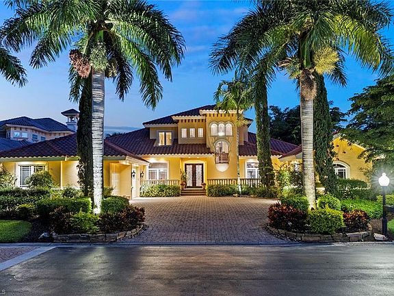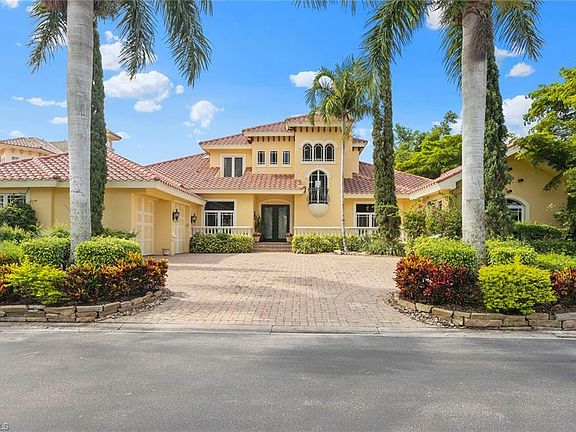 Luxurious Mediterranean estate home that captures amazing golf course and lake views with its open floor plan. Custom-built in 2008 with formal dining, chef's kitchen, 4 bedroom suites, 4.5 baths, and den with built-in cabinetry. Enjoy spectacular views from the 2nd-floor balcony where you'll find a spacious bonus room with a wet bar and the 4th bedroom suite. Wind rated glass, hurricane shutters, granite countertops, and spacious volume ceilings highlight the custom trim work and crown molding. This house has an attached large two-car garage and a separate golf cart garage. The chef's kitchen features a Wolf gas cooktop, built-in Sub-Zero refrigerator/freezer, walk-in pantry, and granite countertops. The large family room, with its pocket glass sliders, opens up to a tranquil outdoor space with a private spa, pool and fireplace which overlook the golf course and lake. A true masterpiece that should not be missed.